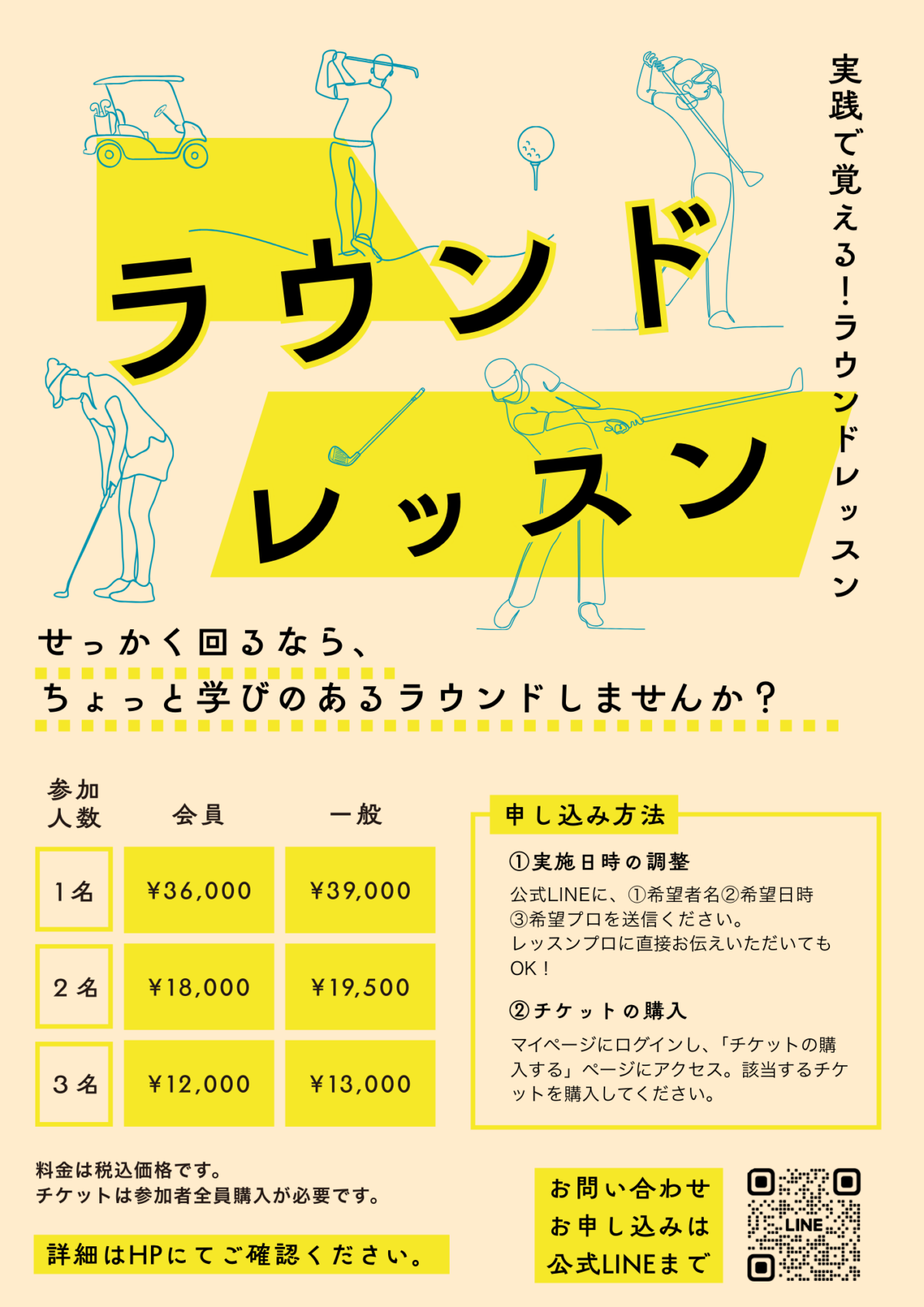参加者人数に該当するラウンドレッスンチケットをご購入いただきます。